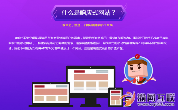 隨著終端設備的不斷增多,要為每個設備提供良好體驗的難度也在不斷的加大,響應式網站作為一項極端技術,可以讓網站在所有的設備中有著不錯的顯示。所以響應式網站建設是當前企業網站建設最應該考慮的建站事宜。此外,網站建設渝頂網絡相關負責人表示:響應式網站可以直接借助響應式自助建站系統獨自輕松完成網站的搭建,不需要懂代碼,寫編程。