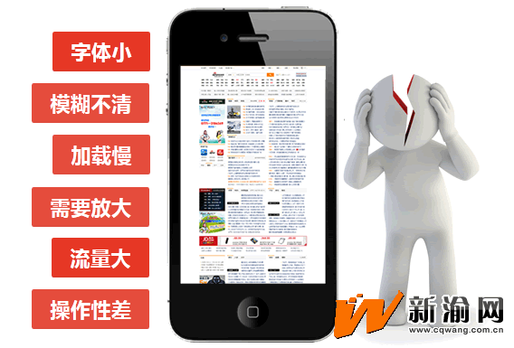 答案很簡單:大家都知道,PC版網頁在手機上縮放后,字體很小,看不清楚,而且圖片尺寸很大,頁面很大,消耗很大的流量,網頁加載很慢,這不僅浪費用戶的錢,而且嚴重的影響用戶的體驗。在這個體驗至上的年代,一個沒有良好用戶體驗的網站,你還期待有成交量嗎?你想知道客戶用手機瀏覽你網站看到的樣子嗎?馬上用你的手機打開自己的網站看看!
